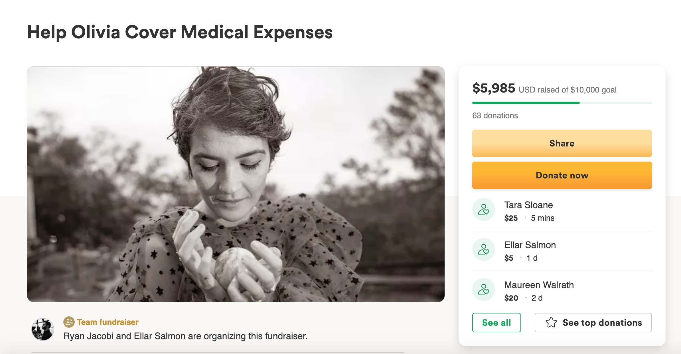 My dear friend Olivia has been sick for a long time and is in need of care.